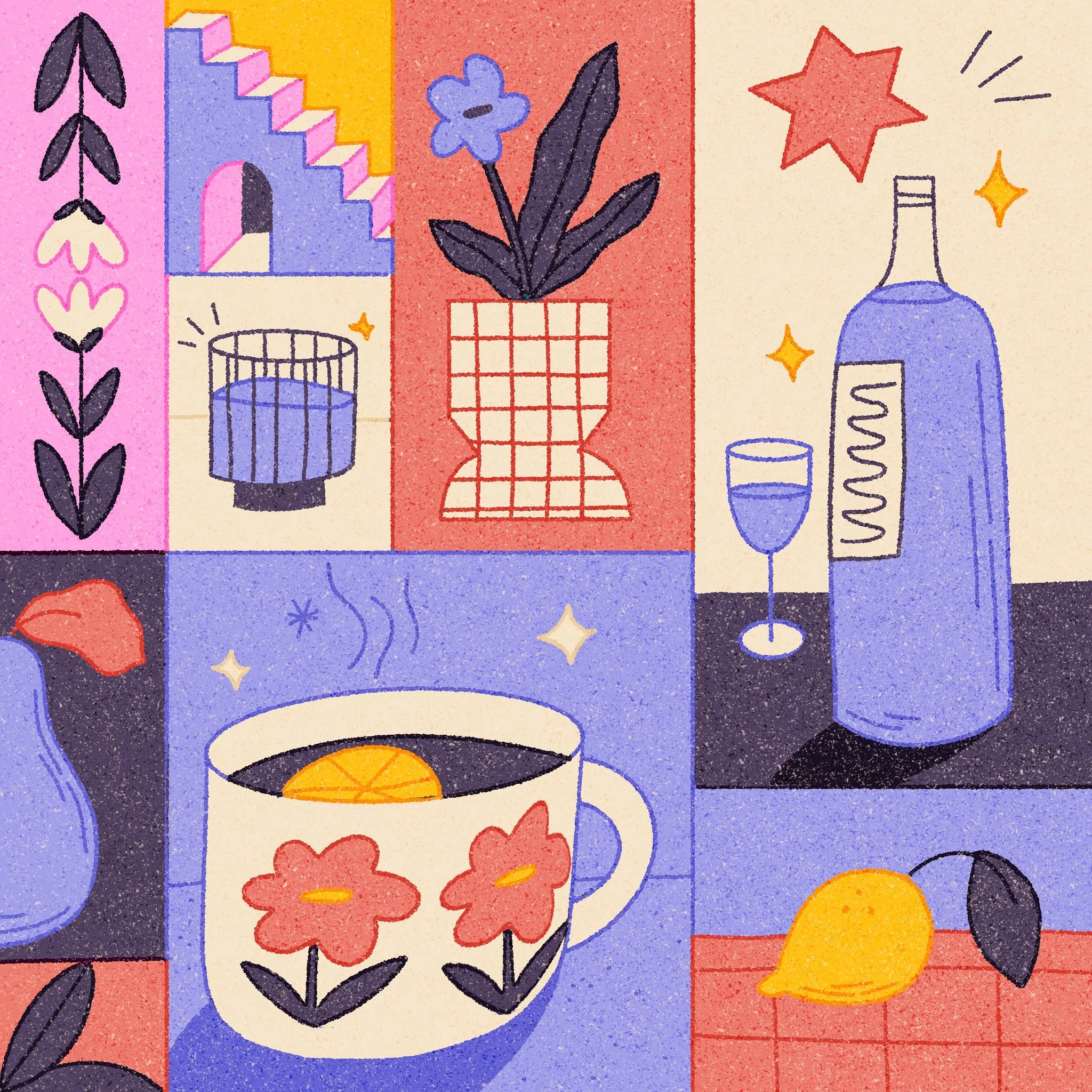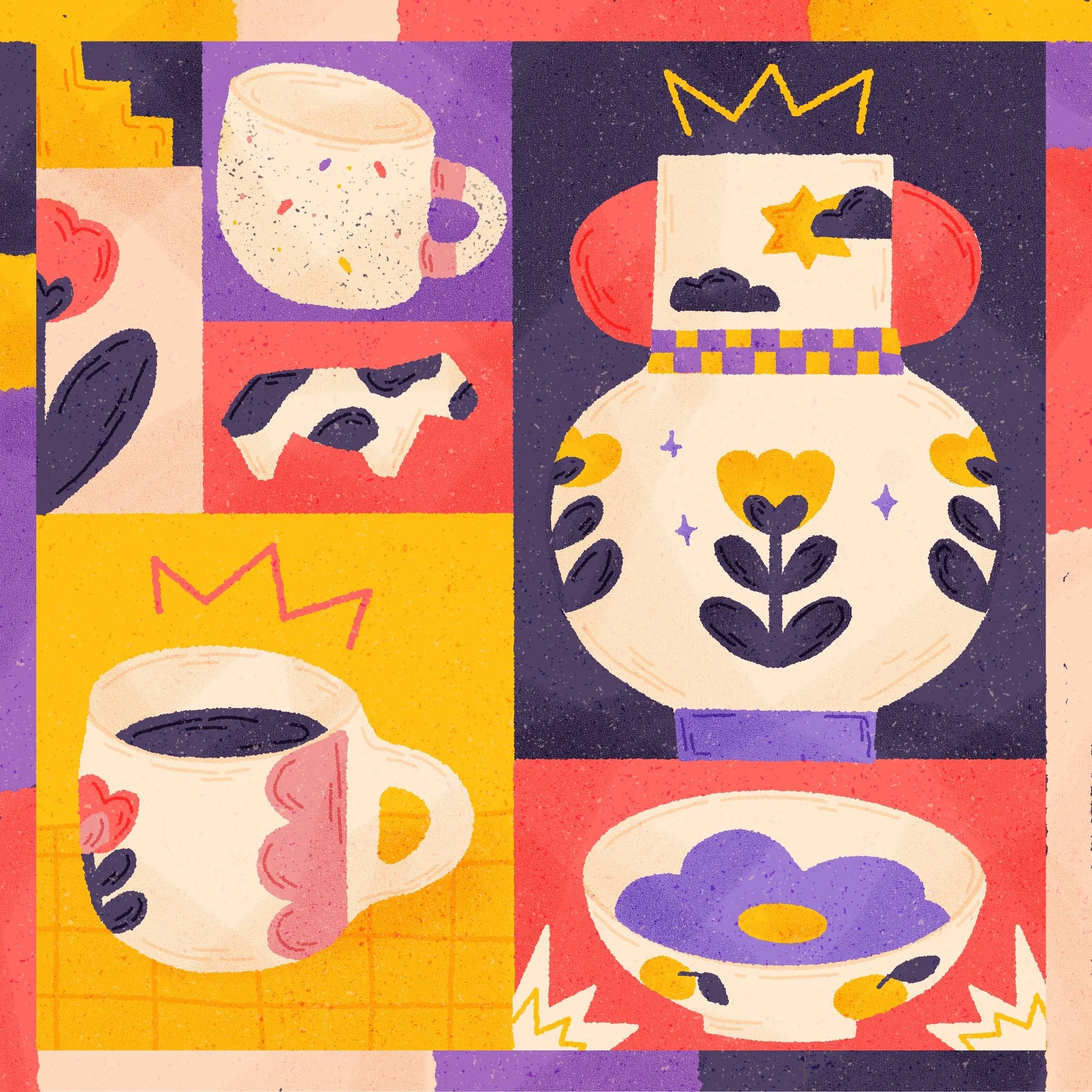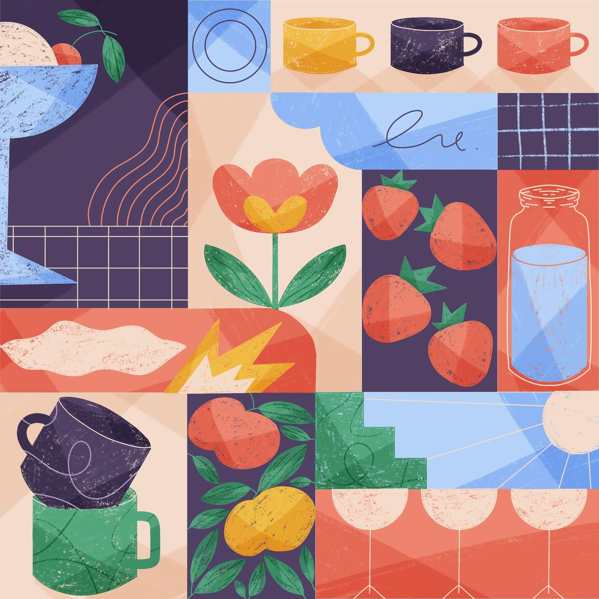 Travail d’illustrations avec une structure faites en mosaïques, inspirées par le travail de Mondrian. Mosaïque