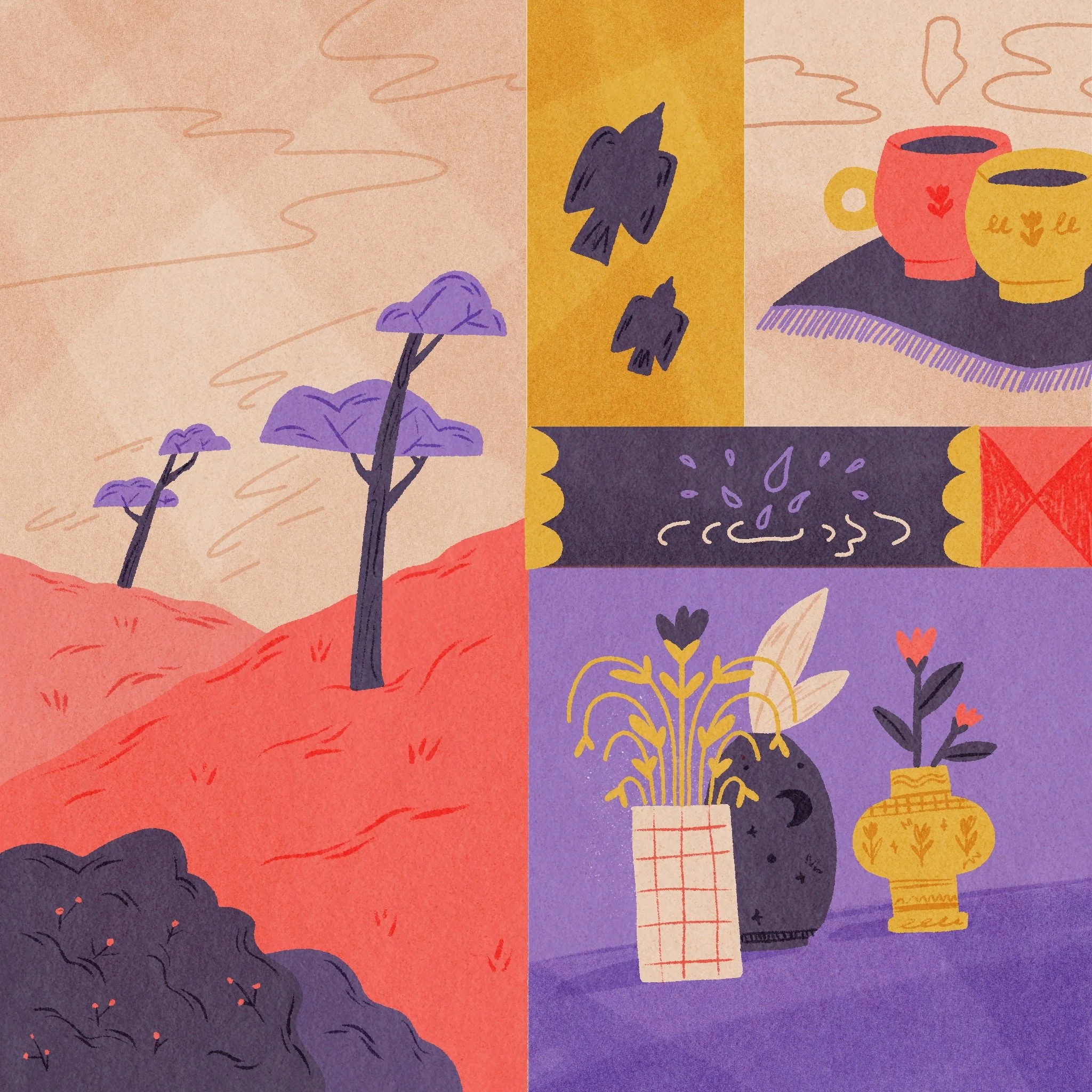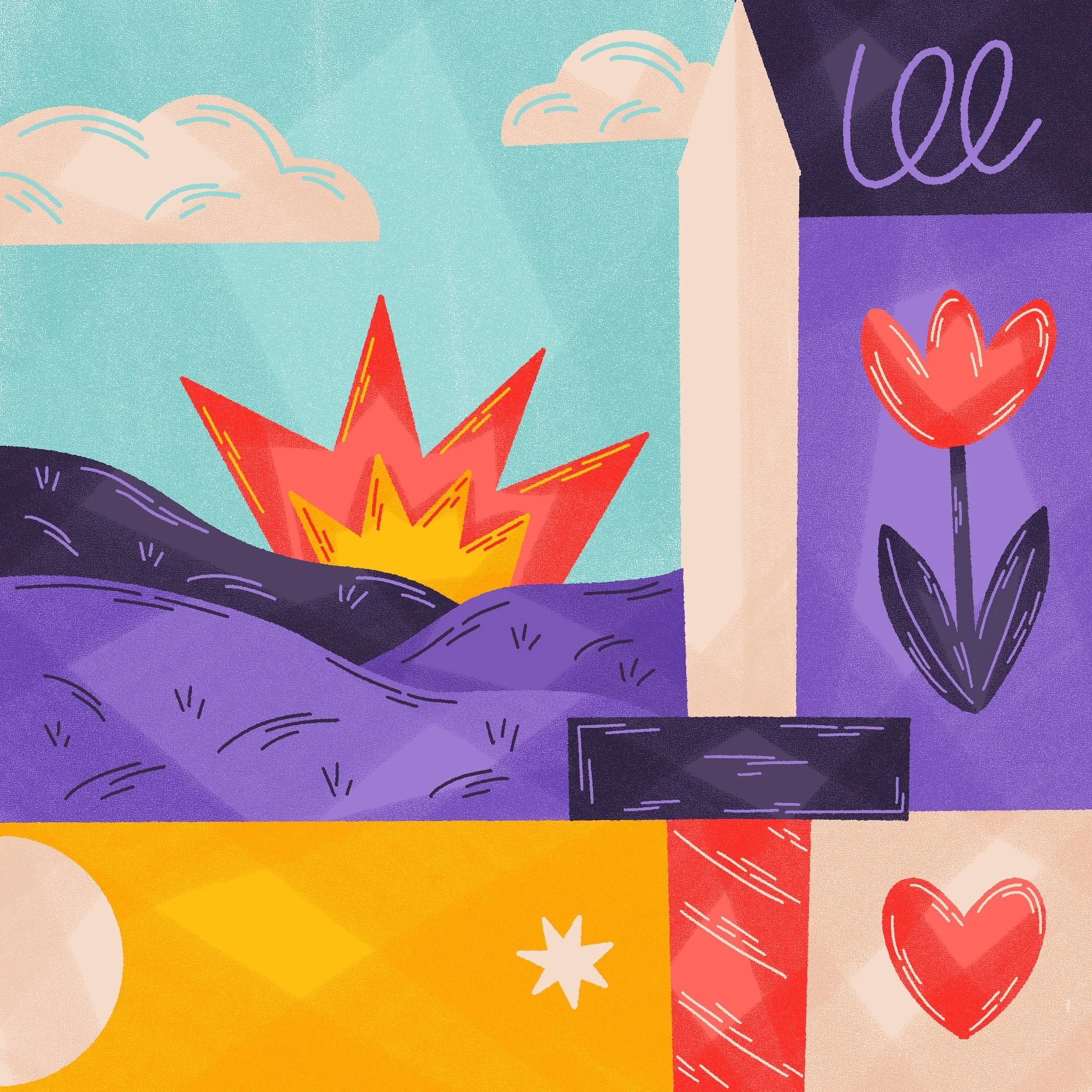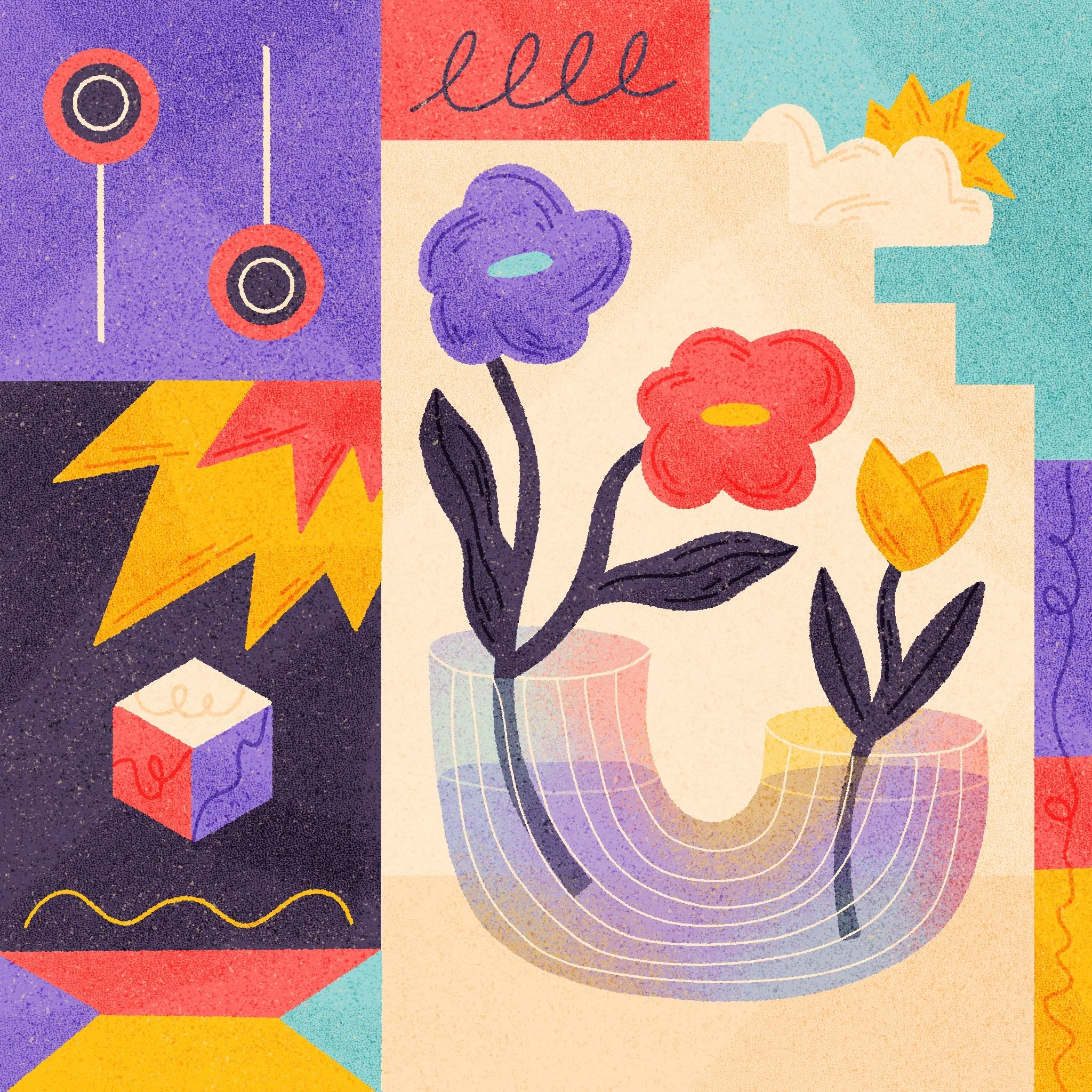 Travail d’illustrations avec une structure faites en mosaïques, inspirées par le travail de Mondrian. Mosaïque